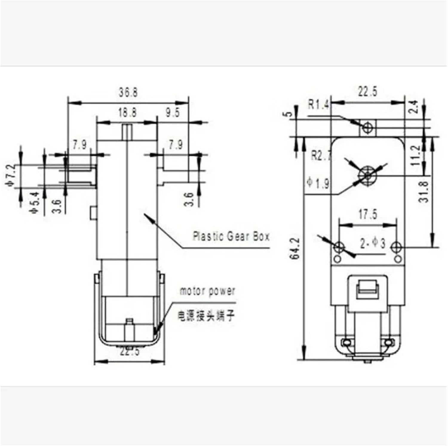 • Diámetro del eje de salida: 5.3 mm y aplanado a 3.6