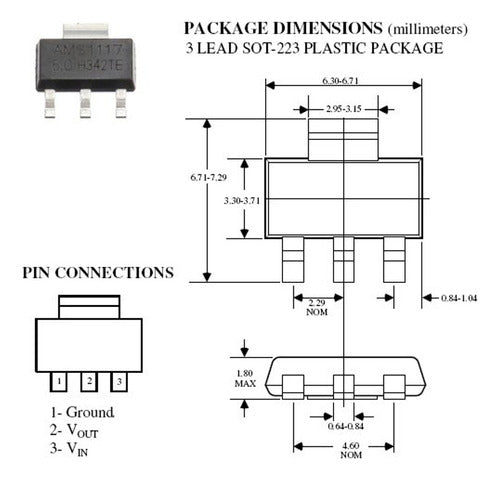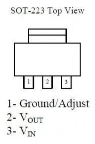 - • \- Encapsulado: SOT-223-5 (4 pines + tab).