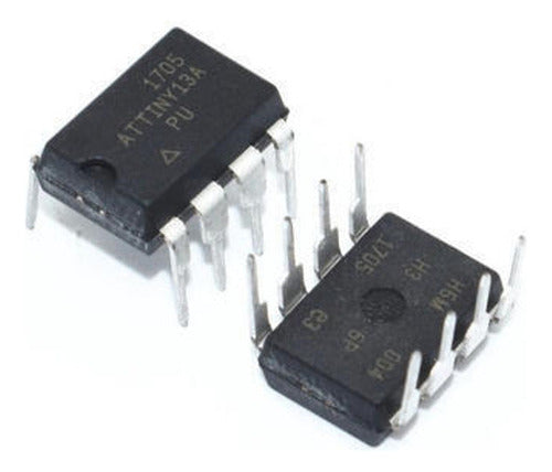 Atmel ATTINY13A es un microcontrolador SMD de 8 pines de la serie AVR TINY, equipado con una arquitectura RISC avanzada de 8 bits de alto rendimiento y bajo consumo. Su límite de voltaje operativo es de 1,8 V a 5,5 V. Tiene un reloj de CPU de 20 MHz, 6 líneas de E/S de uso general, memoria flash ISP de 1 KB, EEPROM de 64 B y RAM de 60 bytes. Tiene 1 temporizador, 2 canales PWM, 4 entradas ADC de canales y un Watchdog. El rango de temperatura operativa de este microcontrolador es de -40 a 85 grados C. Reloj interno y soporte de programación ISP mediante protocolo SPI. Al ser de pequeño tamaño y SMD, es especialmente adecuado para aplicaciones industriales y desarrollo de prototipos.La MCU ATTiny13A-SSU tiene un costo muy bajo y un tamaño pequeño, por lo que se puede agregar en cualquier diseño que no requiera un alto rendimiento o una mayor cantidad de pines. Se puede utilizar para realizar pequeñas tareas informáticas y también puede actuar como MCU secundaria en el dispositivo, descargando muchas tareas de la MCU principal. Consta de casi todos los periféricos básicos necesarios en una MCU y, por lo tanto, es una buena alternativa para tareas informáticas pequeñas.