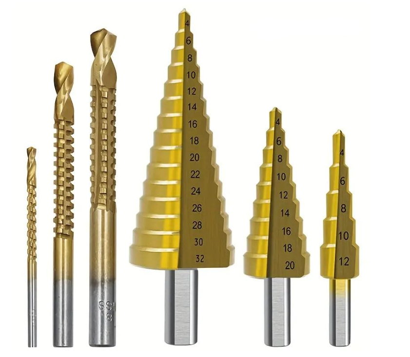 Box de Juego de 6 mechas / brocas escalonadas de titanio en caja