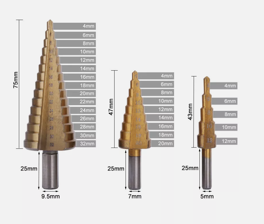 - • \*\*\*Brocas escalonadas: 4-12 mm/4-20 mm/4-32 mm