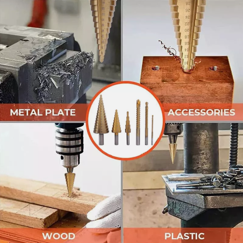 Juego de 6 mechas / brocas escalonadas de titanio en bolsa