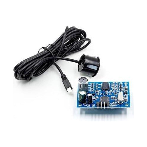 El sensor ultrasonido JSN-SR04T es un sensor de distancia que utiliza ultrasonido (sonar) para determinar la distancia de un objeto en un rango de 25 a 450 cm. Destaca especialmente por su resistencia al agua, pequeño tamaño, bajo consumo energético y buena precisión. Perfecto para aplicaciones donde el sensor estará expuesto a la intemperie/humedad/agua, utilizado en automóviles para medir distancia de colisión/parqueo.