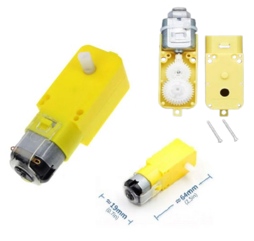 Ampliamente utilizado en proyectos de robótica y proyectos compatibles con Arduino, ideal para cursos de física sobre velocidad versus fuerza. Este Motor-Reductor DC amarillo es un dispositivo electromecánico que incluye un motor 3 a 12Vdc (recomendado 6-8V) y una caja con engranajes que te permite reducir la velocidad del motor y proporcionalmente incrementar la fuerza mecánica a los ejes de las ruedas (por ejemplo, reduce la velocidad de un carrito aumentando su fuerza)