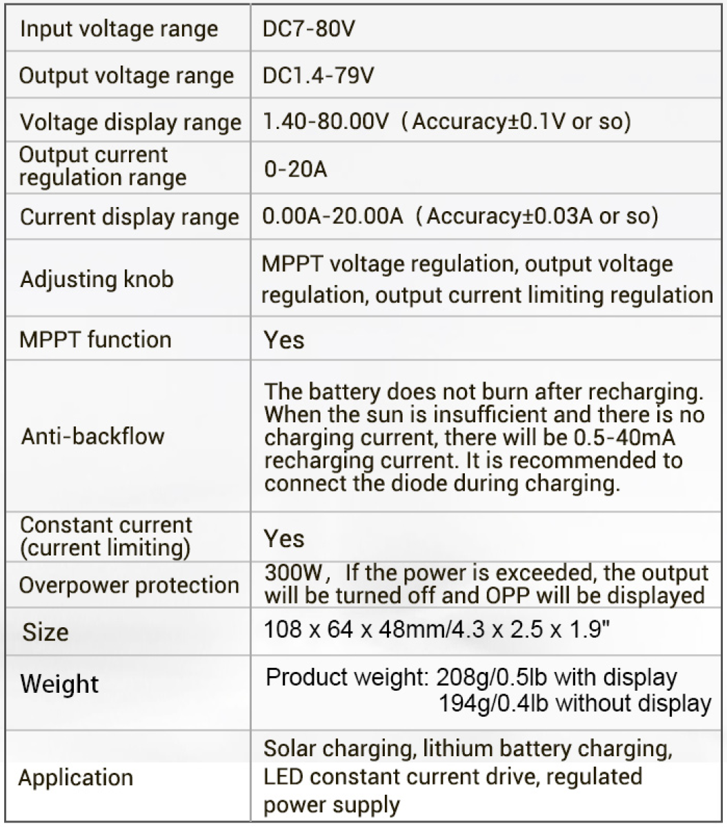 Es para nosotros uno de los mejores Convertidor / Regulador de voltaje y de amperaje. Permite manejar corrientes hasta 300W o 80V o 20Amperios.
